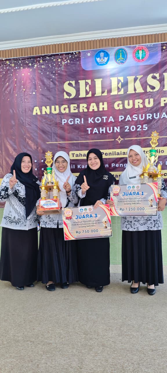 Prestasi lebih gemilang diraih oleh Qudsyiah, guru Matematika yang berhasil meraih Juara 1 Anugerah Guru Prima. Dengan pendekatan pembelajaran yang kreatif, kontekstual, dan mudah dipahami, Qudsyiah mampu menghadirkan Matematika sebagai mata pelajaran yang menyenangkan bagi siswa. Keberhasilan dua guru ini tidak hanya menjadi prestasi pribadi, tetapi juga kebanggaan bagi seluruh keluarga besar UPT SMP Negeri 1 Pasuruan. Kepala sekolah, guru, siswa, hingga orang tua turut merasakan kebahagiaan atas capaian tersebut.